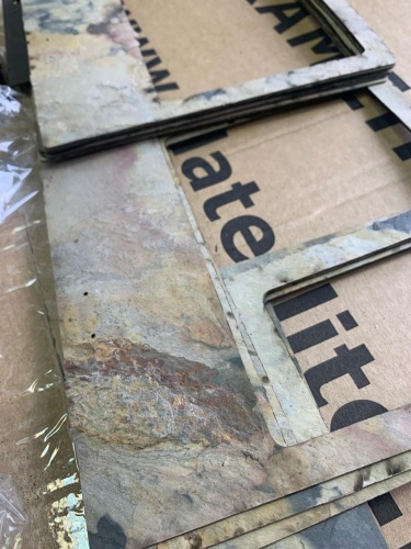 Накладка из каменного шпона вырезается любого размера и формы на лазерном станке согласно технического задания.