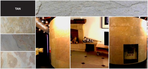 Шпон из глинистого сланца песочно-желтого цвета (травертин). Рисунок и текстура спокойная, встречаются партии «имитация коры дерева» и стиль «старый Китай»