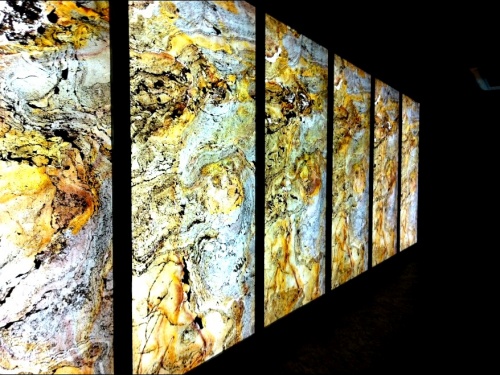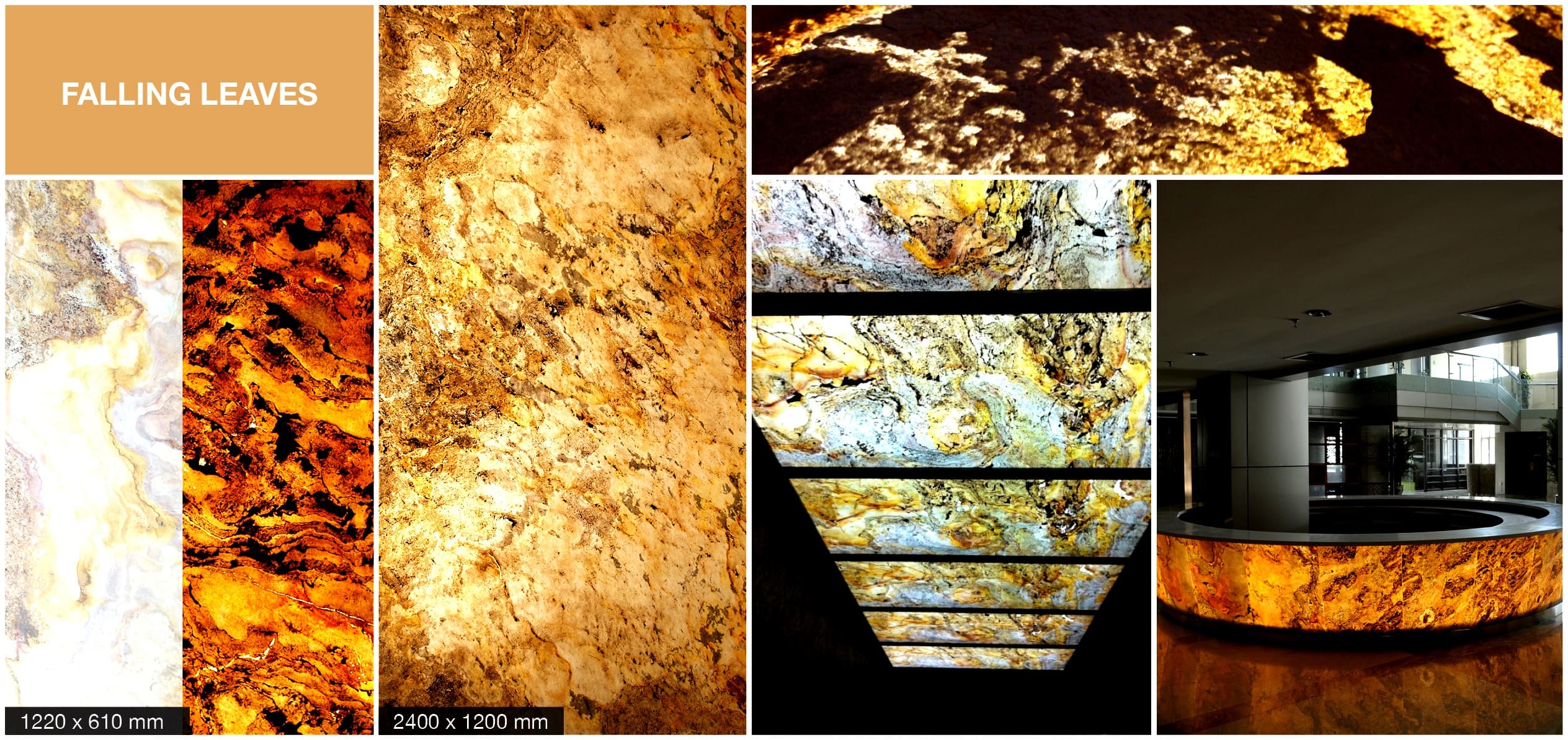 Самый популярный и самый красивый каменный шпон натурального сланца, при подсветке теплым желтым цветом очень похож на оникс. Толщина листа 2-3 мм. Поверхность фактурная и рельефная. Вес листа всего 1.5 кг.