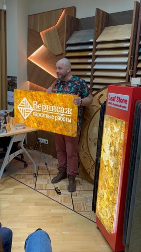 Световой короб из каменного шпона. Каркас изготовлен из оргстекла 3мм, оклеееный каменным шпоном Failing leaves из натурального сланца.
