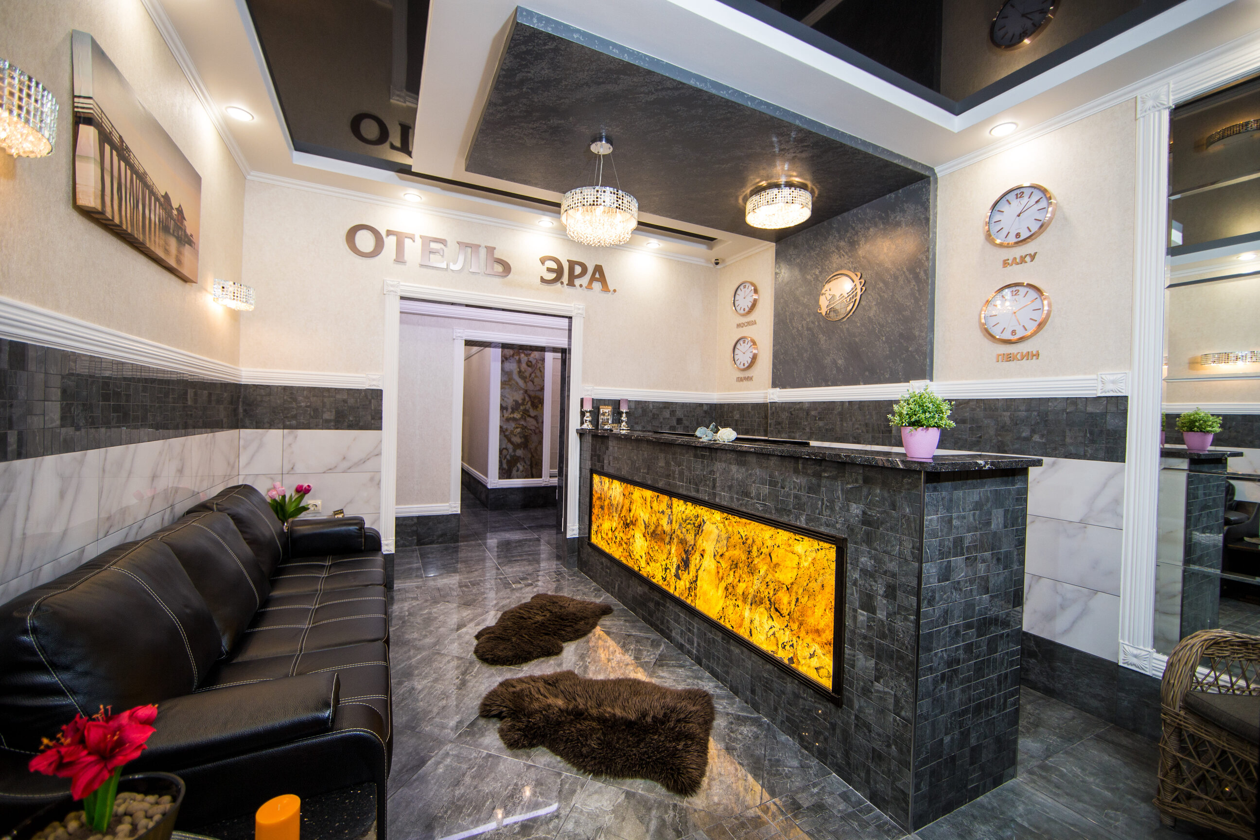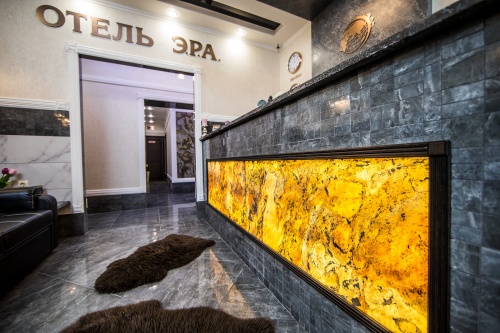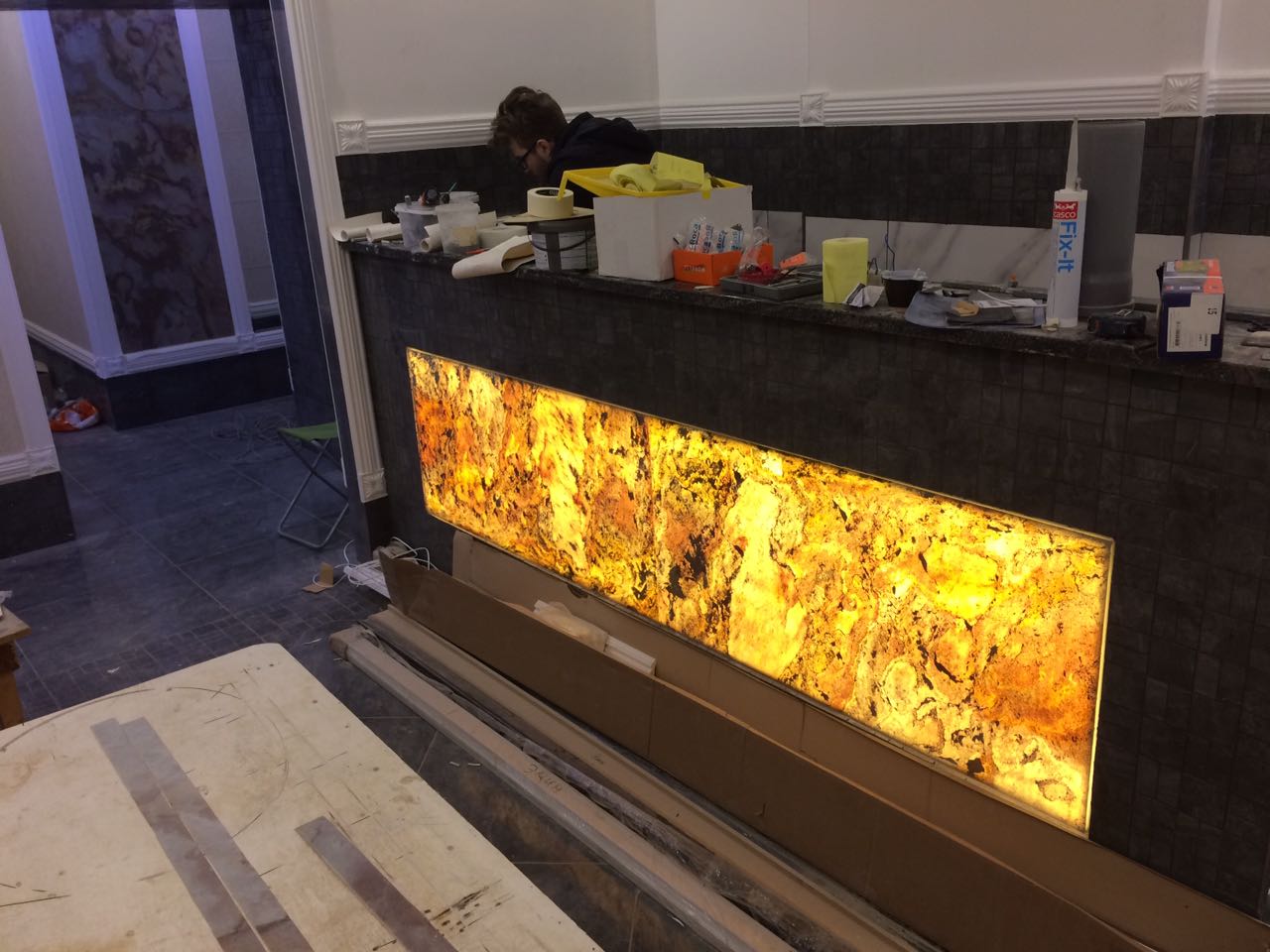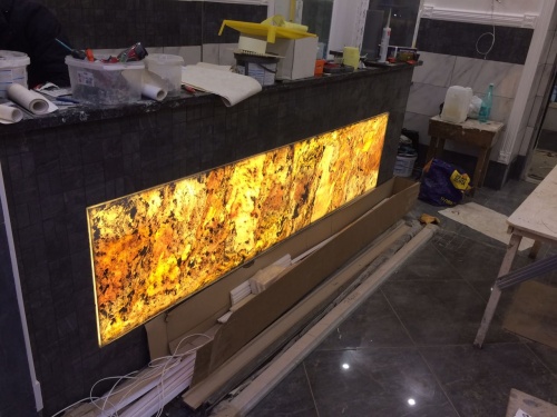 Световая накладка на готовую стойку рецепции в нишу.