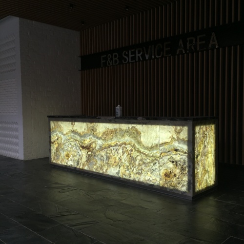 Производим изготовление монолитных накладок из каменного шпона с подсветкой для мебели в коммерческие помещения.