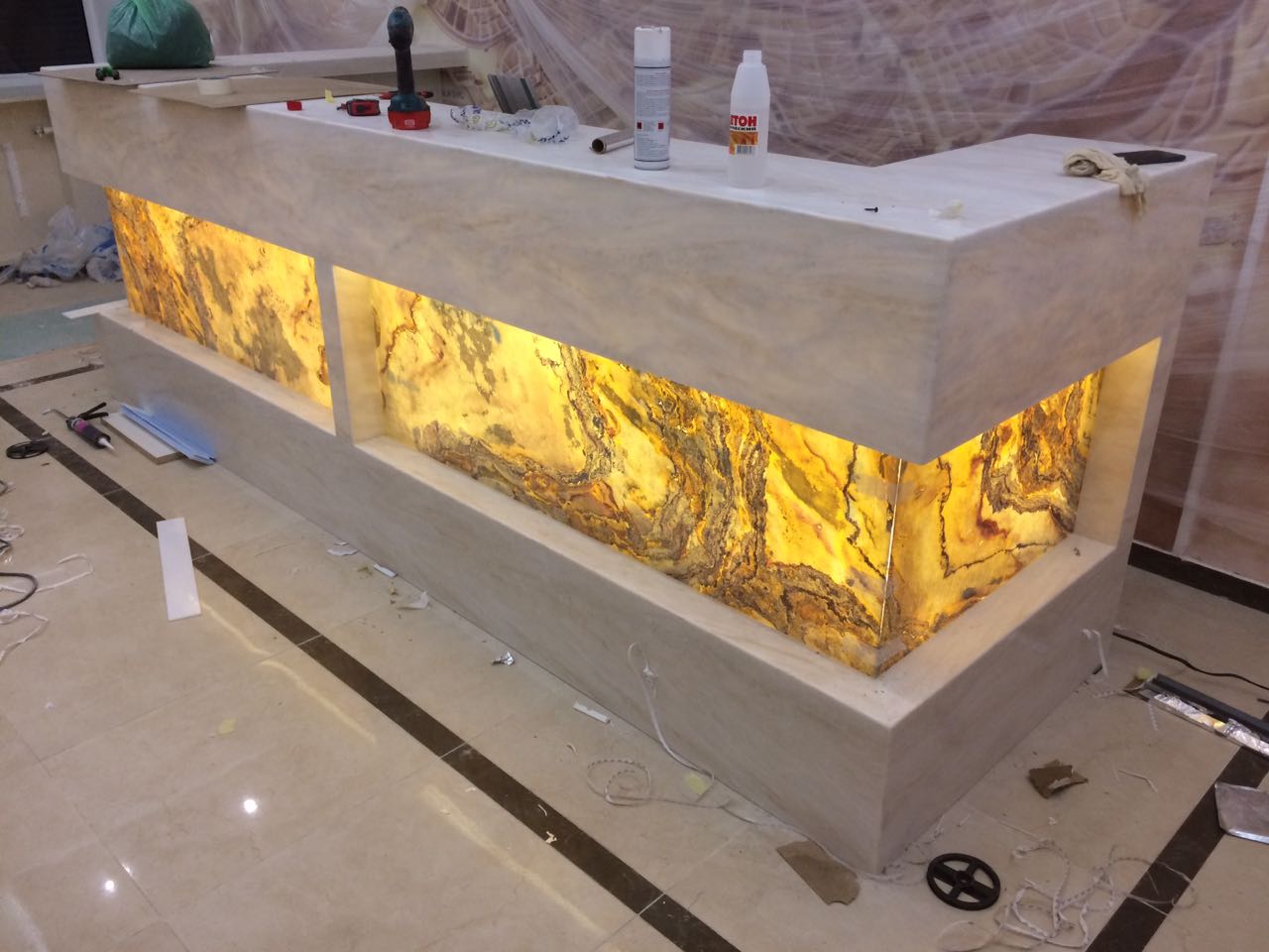 Финишное покрытие акриловый лак, защищает камень от УФ лучей и физических повреждений.