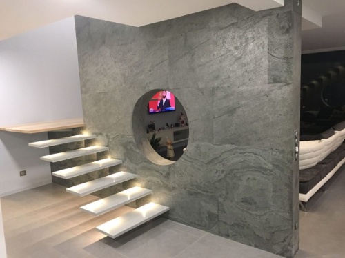 Настенные панели из каменного шпона представляют собой оптимальное решение для оформления интерьера: отделки стен, потолков, создания арок и перепланировки интерьера. Обладают хорошей износоустойчивостью и обеспечивают высокое звукопоглощение и теплоизоляцию. Натуральный срез сланца толщиной 2-3 мм созданный природой запрессован на панель МДФ толщиной 18 мм имеет антивандальное покрытие для долговечной экспликации в частных и коммерческих интерьерах. Кромка ABS.