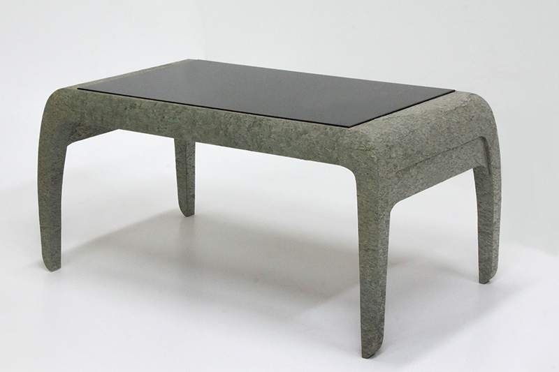 Проект "Византия", журнальный стол из фанеры оклеен каменным шпоном на ткатевой основе с красным деревом и покрытый акриловым лаком.