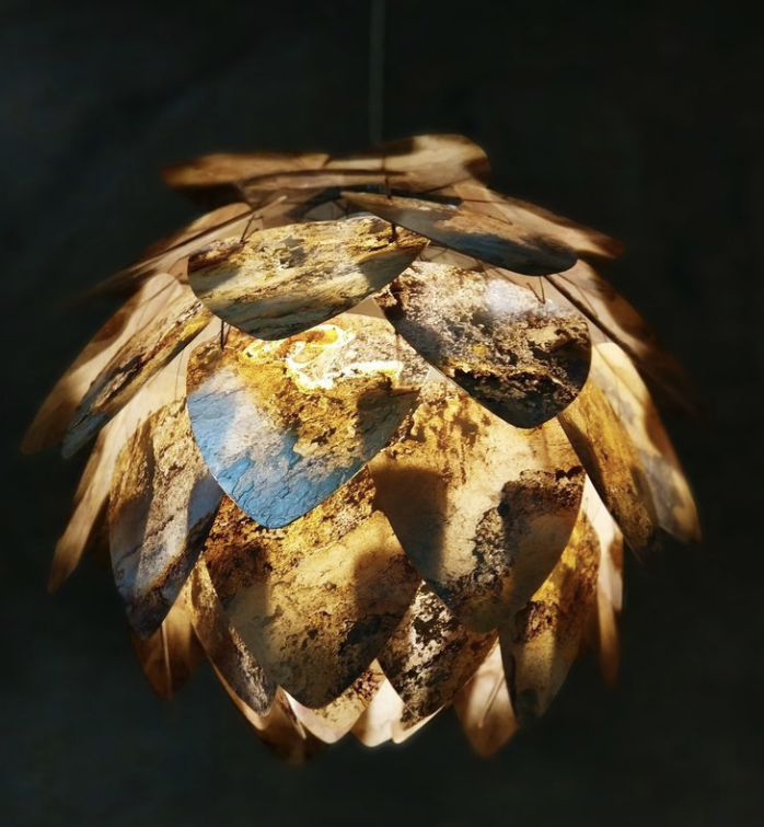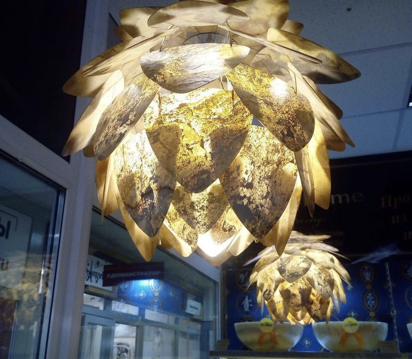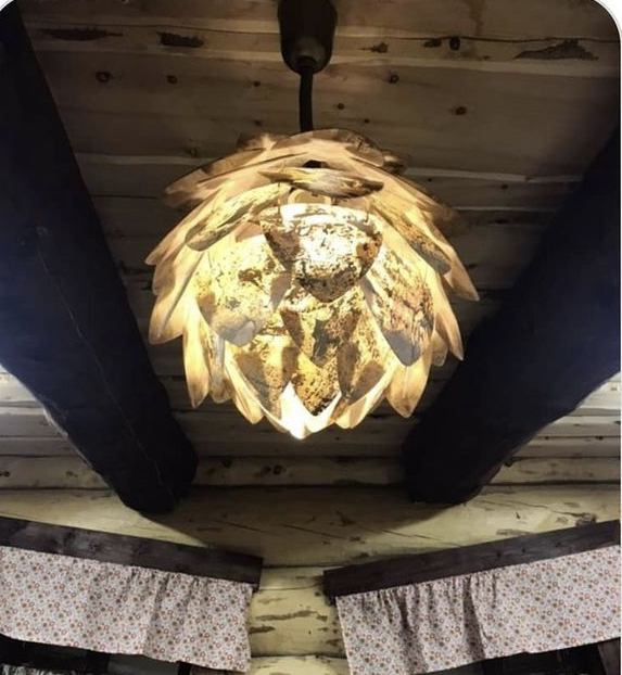 Каменная люстра в форме "Шишки" прекрасно подойдет для классического русского интерьера, в комплексе с деревянной отделкой интерьера, спа и банного комплекса, где необходимо не яркое и спокойное освещение.