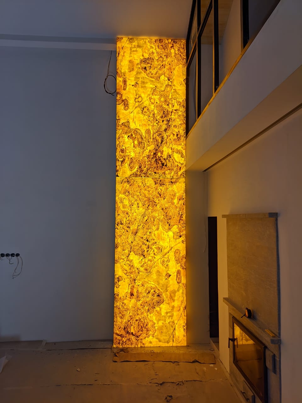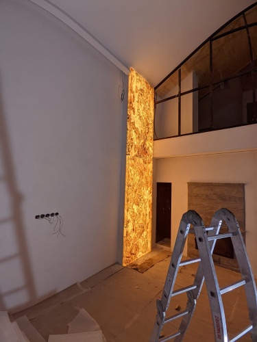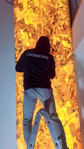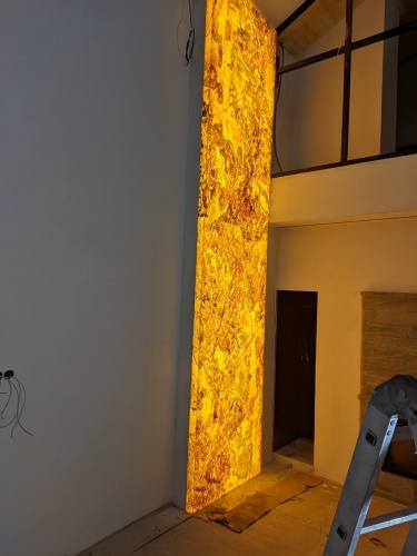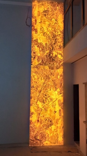 Световое панно из каменного шпона Failing leaves размером 5000*1200*40 мм.
