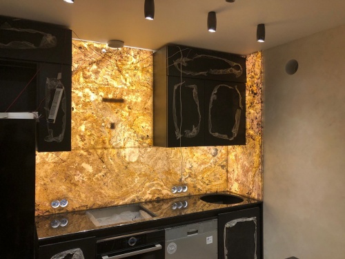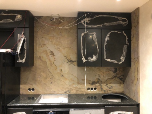 Монтаж производиться отдельными световыми блоками с единым каменным полотном из листов 2400*1200 мм.