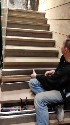 Трансформатор устанавливали на каждый пролет лестницы - по 150 вт (мощность всех ступеней +30%).