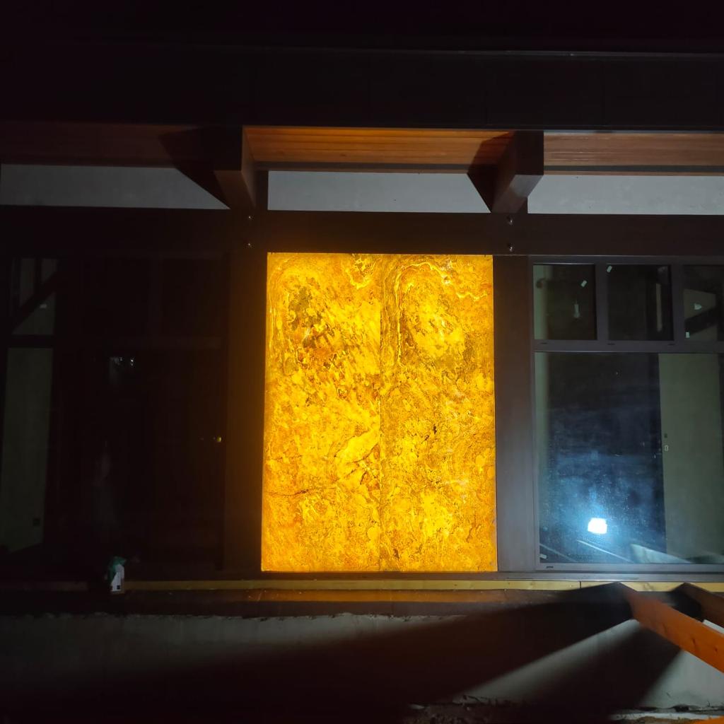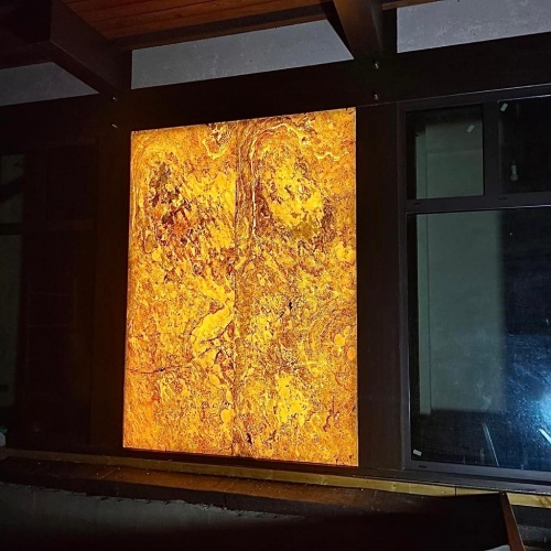 Уличный световой короб из каменного шпона. Каркас изготовлен из оргстекла 3мм, оклеееный каменным шпоном Failing leaves из натурального сланца.