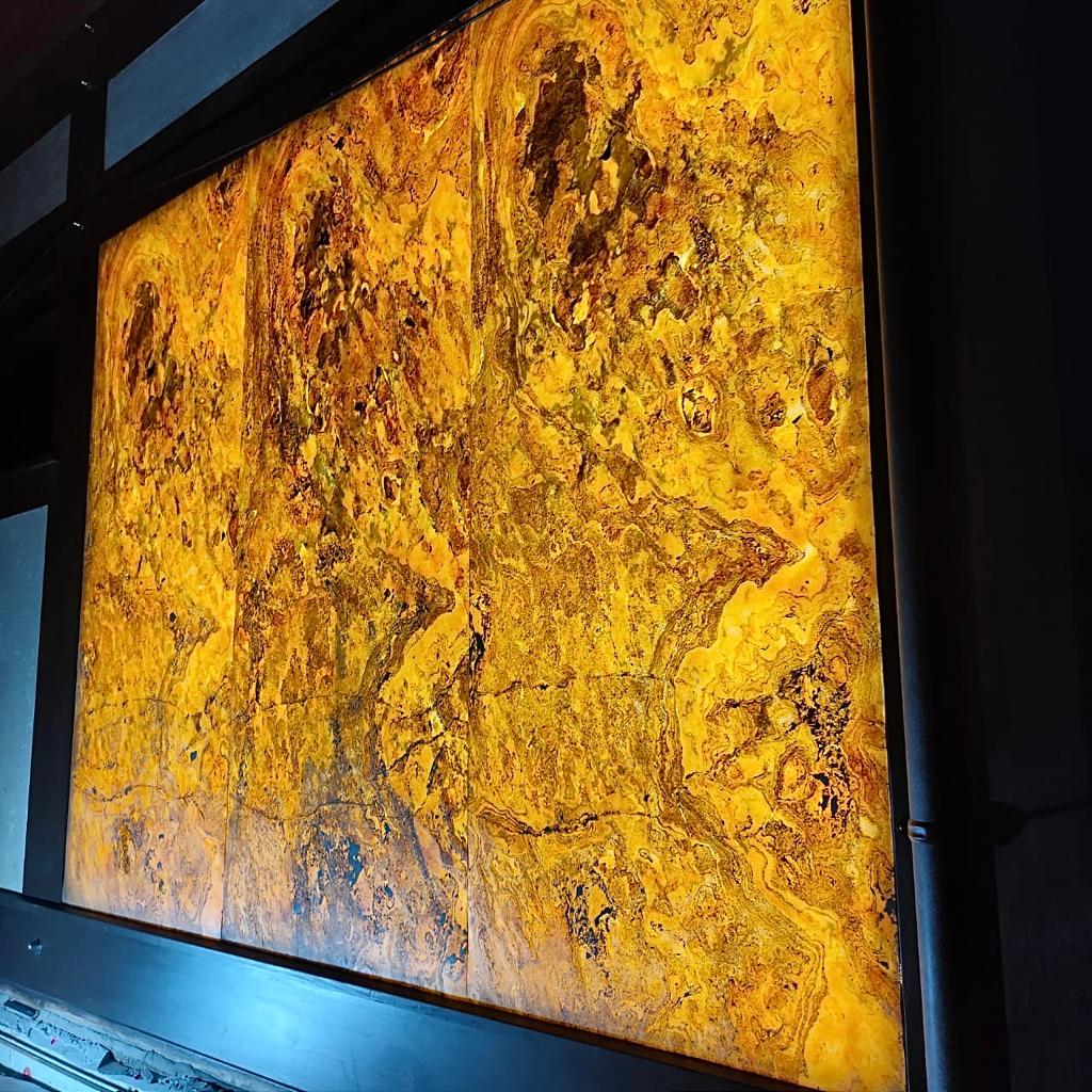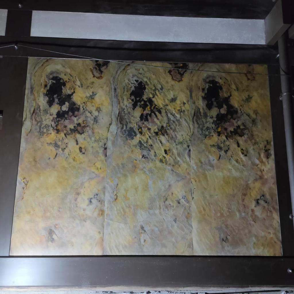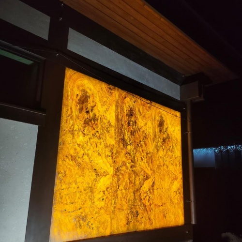 Уличный световой короб из каменного шпона. Каркас изготовлен из оргстекла 3мм, оклеееный каменным шпоном Failing leaves из натурального сланца.